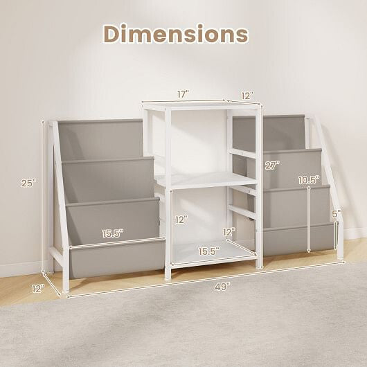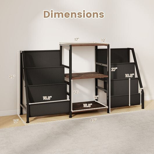 ● Wide countertop dual open shelves and 6 storage pockets keep items accessible